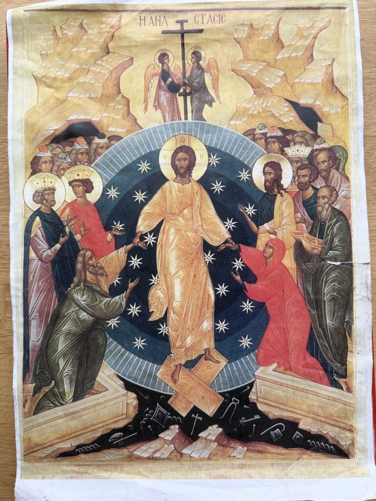 Joachim Kordisch konnte aufgrund seiner altesbedingten Einschränkungen eine ANASTASIS-Ikone nicht mehr vollenden und bat mich, diese "fertig zu stellen".