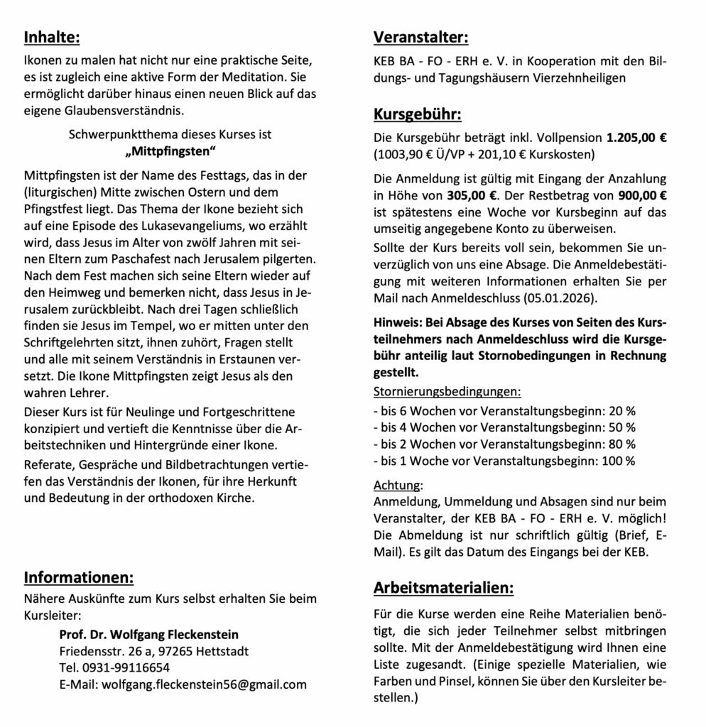 • 2. – 12.2.2006: Thema: Die Christusikone – im Bischöflichen Priesterseminar in Speyer